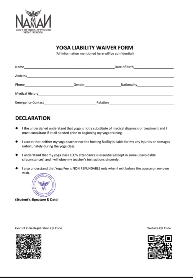 NAMAN offers 4 weeks Yoga Teacher Training for advanced practitioners, upon successful completion students will receive Govt of India approved certificate. YOU WILL LEARN THE FOLLOWING 1. Ashtanga Yoga 2. Advanced Mudras & Pranayam 3. Vedic Mantra Chanting 4. Chakra Meditation 5. Ayurveda Principles 6. Nutritional Guidance 7. Human Body Anatomy 8. Vedic Philosophy 9. Teaching Methodologies TRAINING FEE INR 151000 | 4 Weeks | Mon to Fri | Flexible Timing
