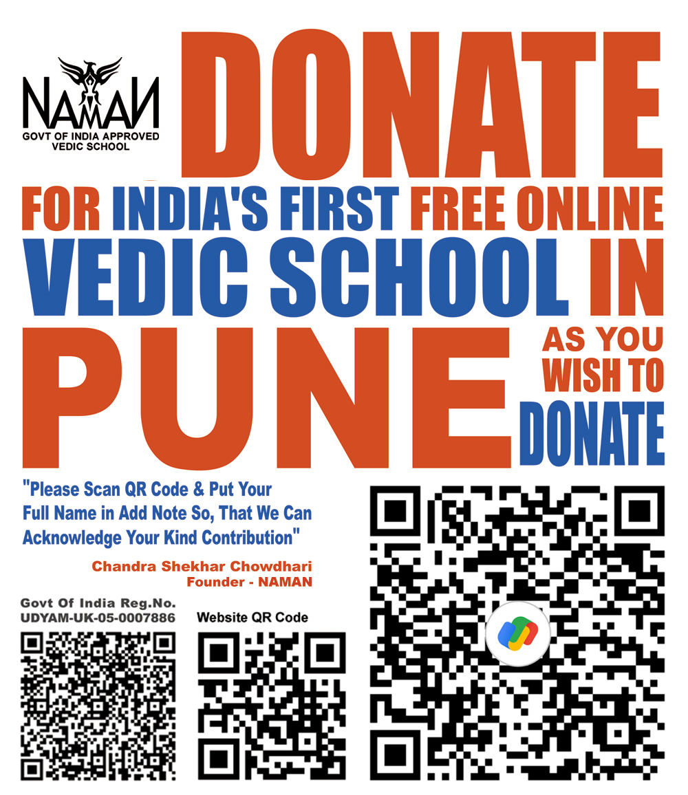 WHY WE NEED DONATION? TO BUY A SUITABLE LAND WHERE WE WILL CONSTRUCT NAMAN VEDIC SCHOOL AS PER VASTU SHASTRA TO PROVIDE FREE VEDIC EDUCATION TO UNDERPRIVILEGED CHILDREN. LOOKING FORWARD TO GENEROUS HELP FROM THE SOCIETY IN THE FORM OF DONATION. YOUR NAME WILL BE IN OUR DONOR'S DATABASE FOR FUTURE ACKNOWLEDGEMENTS. Chandra Shekhar Chowdhari Founder - NAMAN